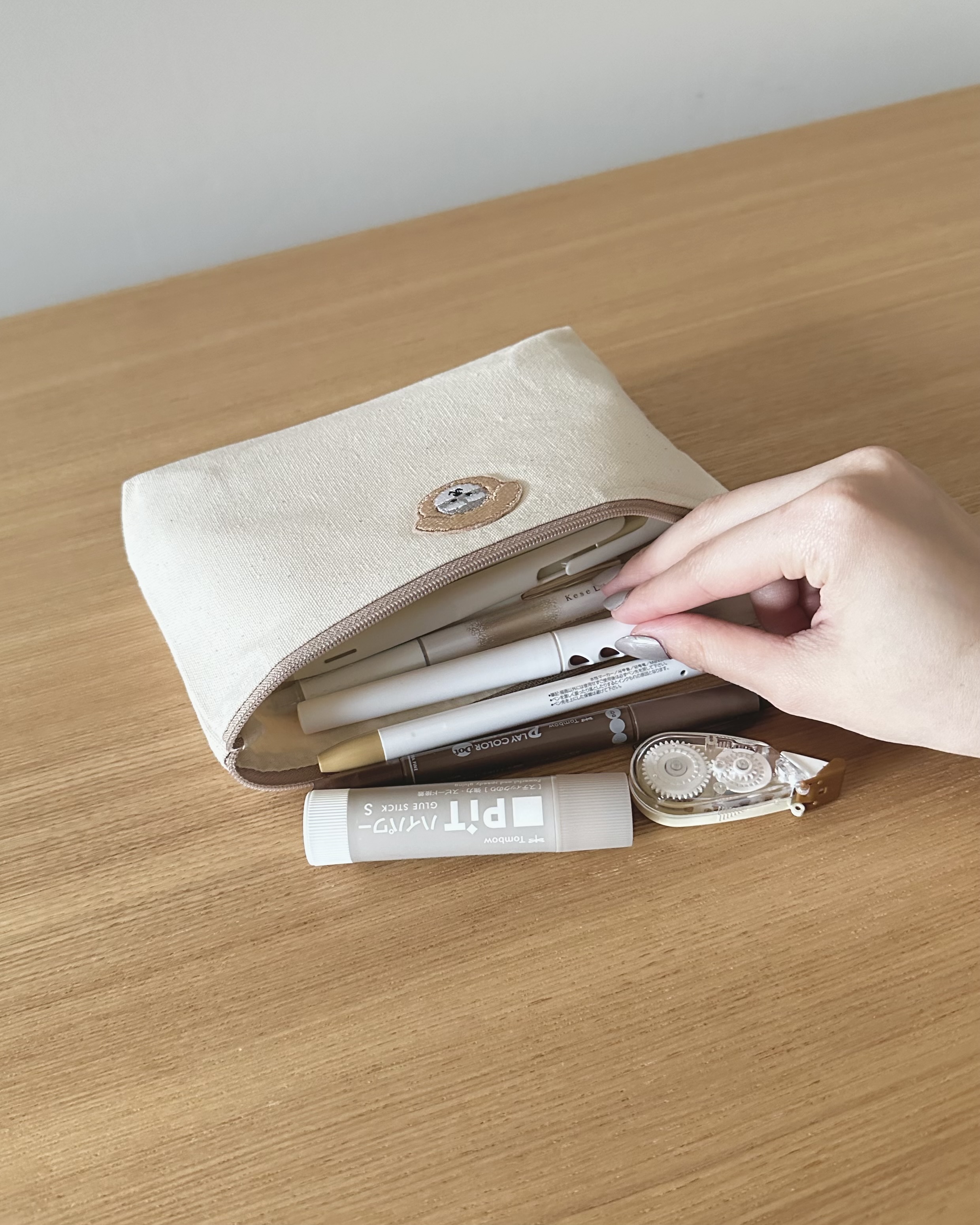 シンプルかつ可愛いデザインで、ペンケースとしてだけではなく、ポーチとして小物を入れたい方にもオススメのアイテムです!