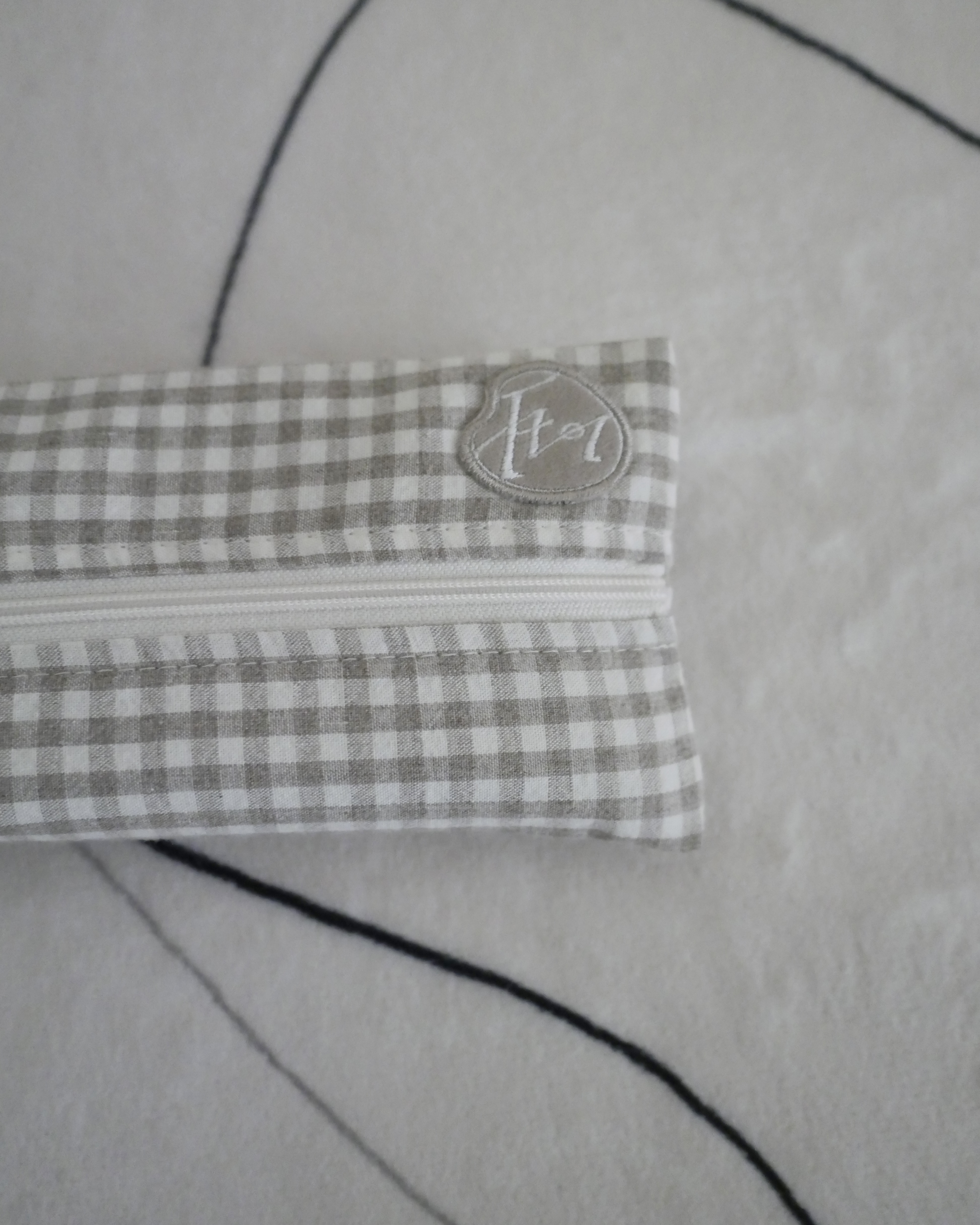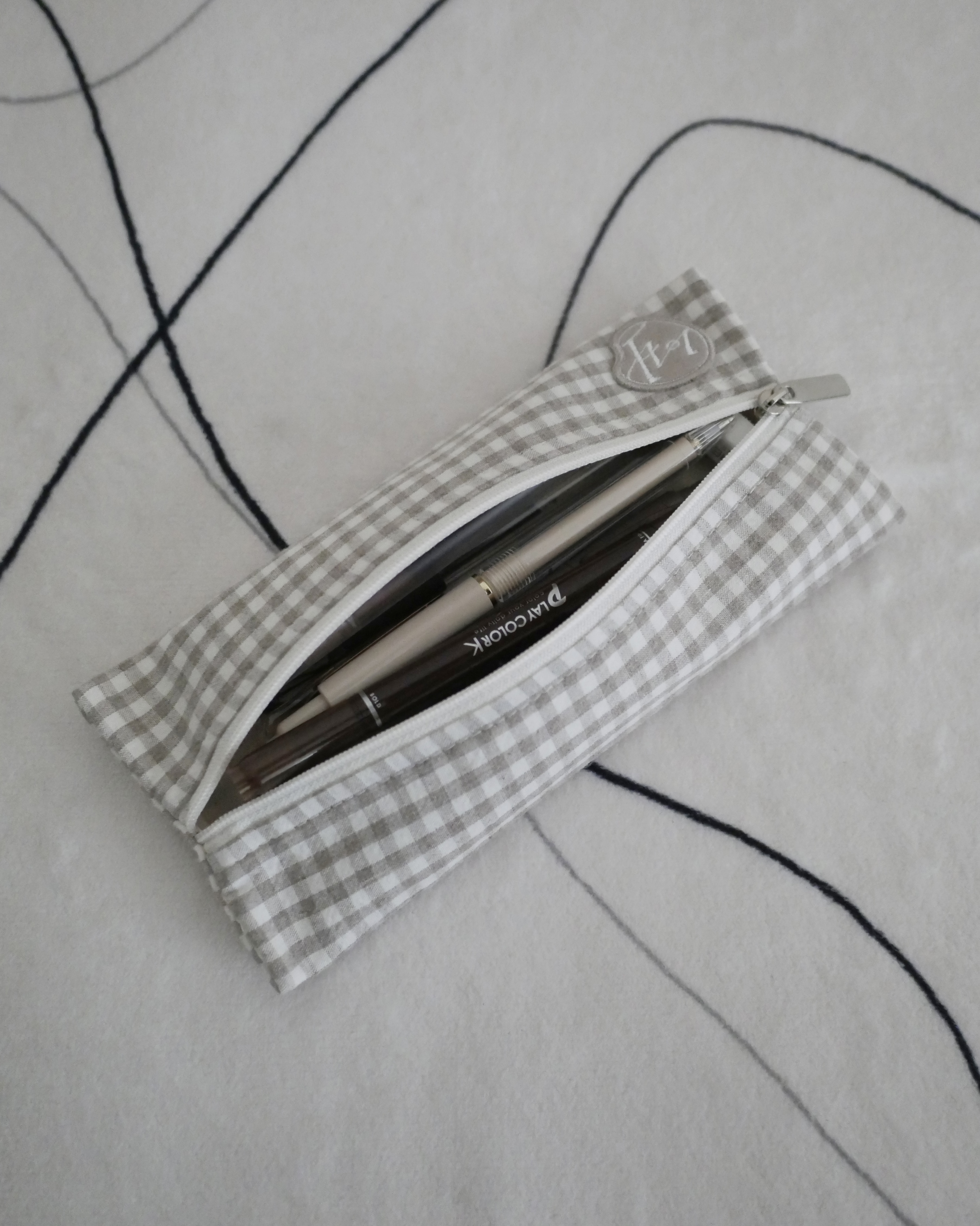 さりげなく添えたロゴ刺繍が上品な印象のペンケース。