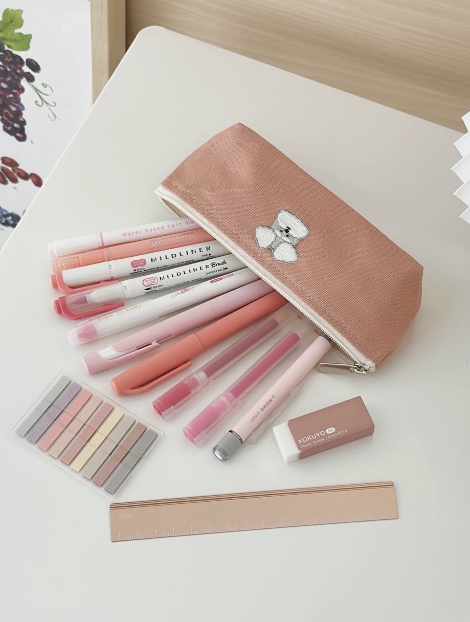 勉強や仕事で必要なアイテムをすっきりまとめられます。ファスナー付きで持ち運びも安心。