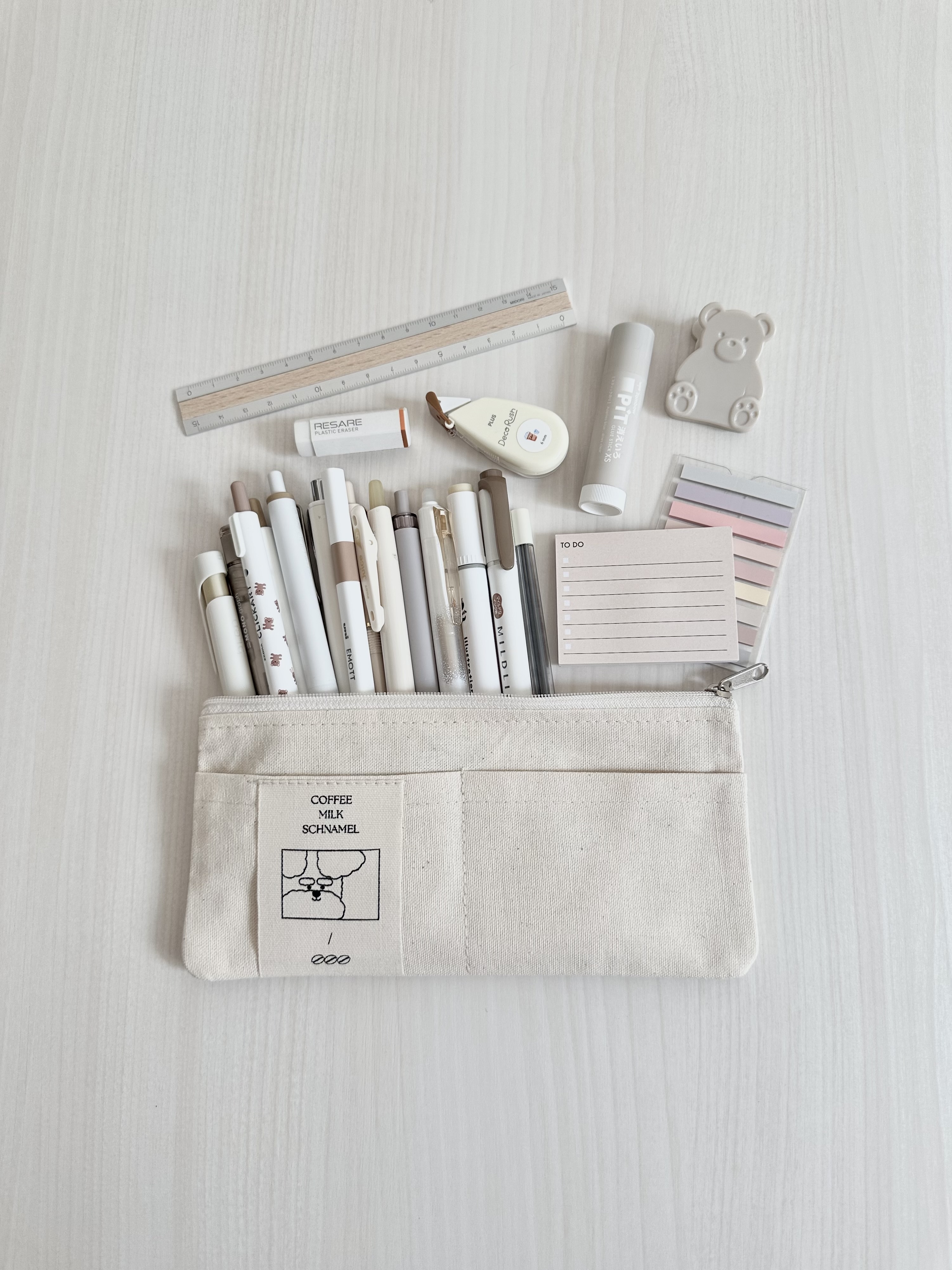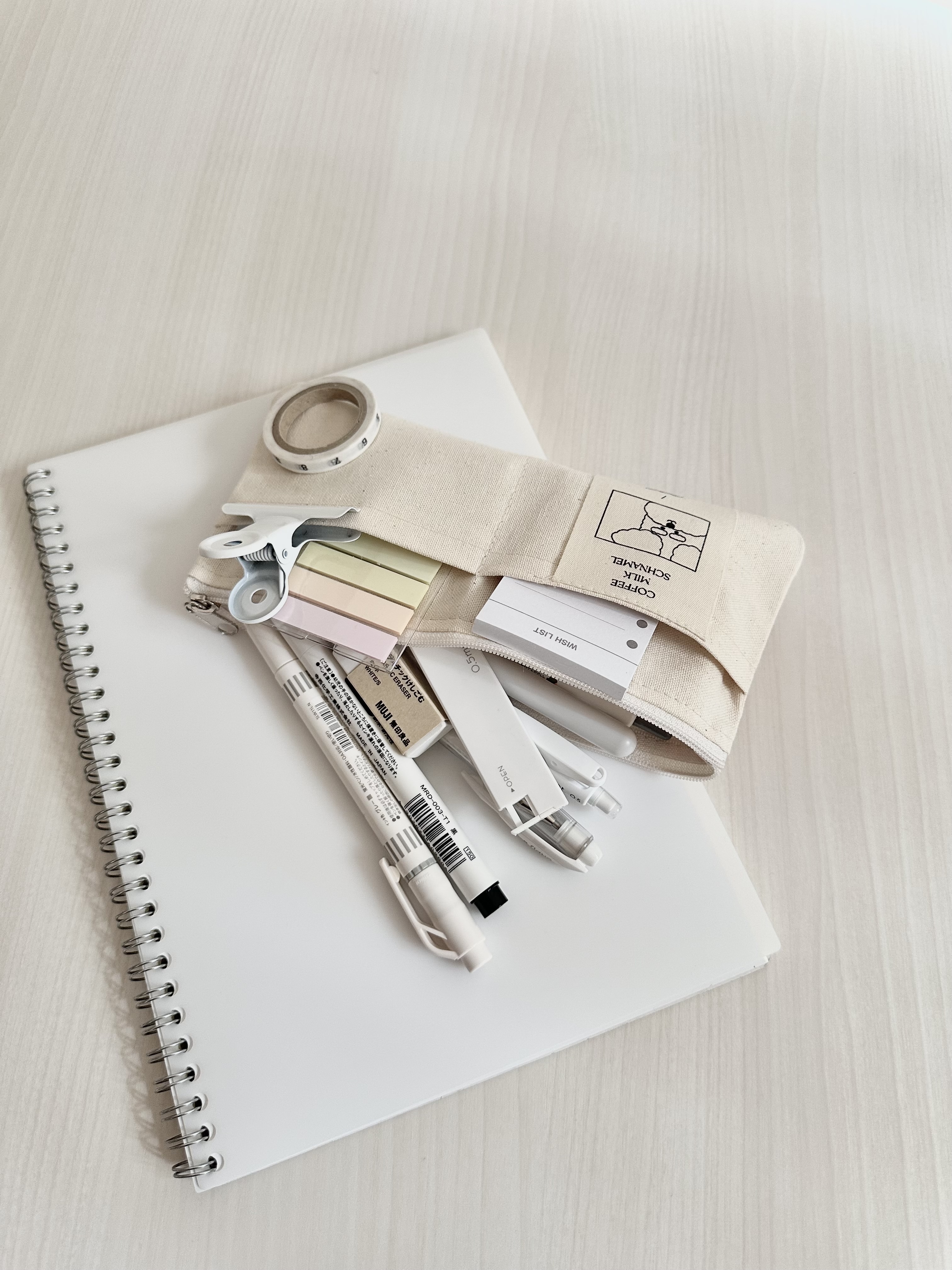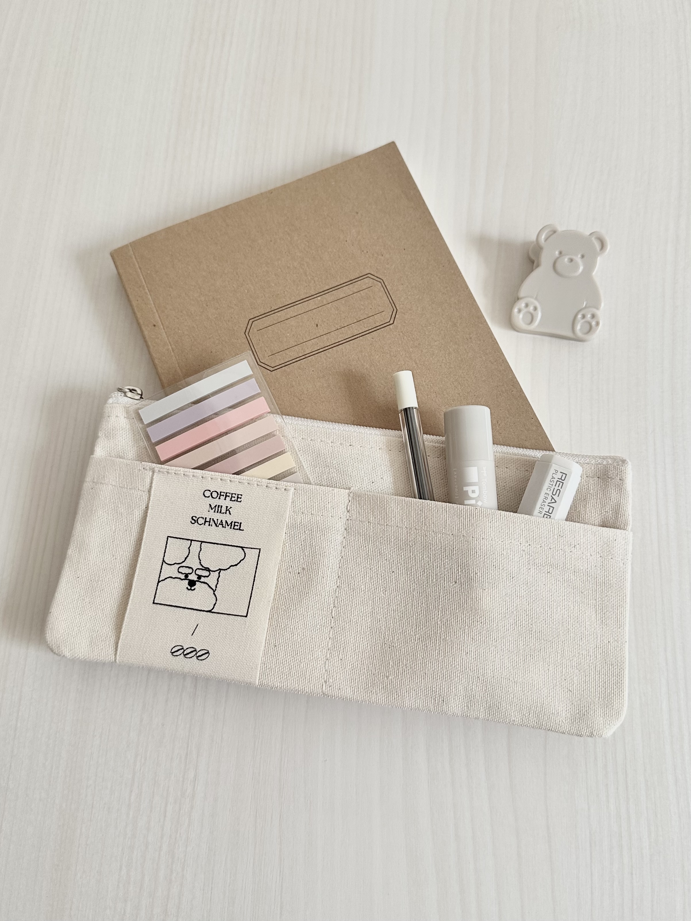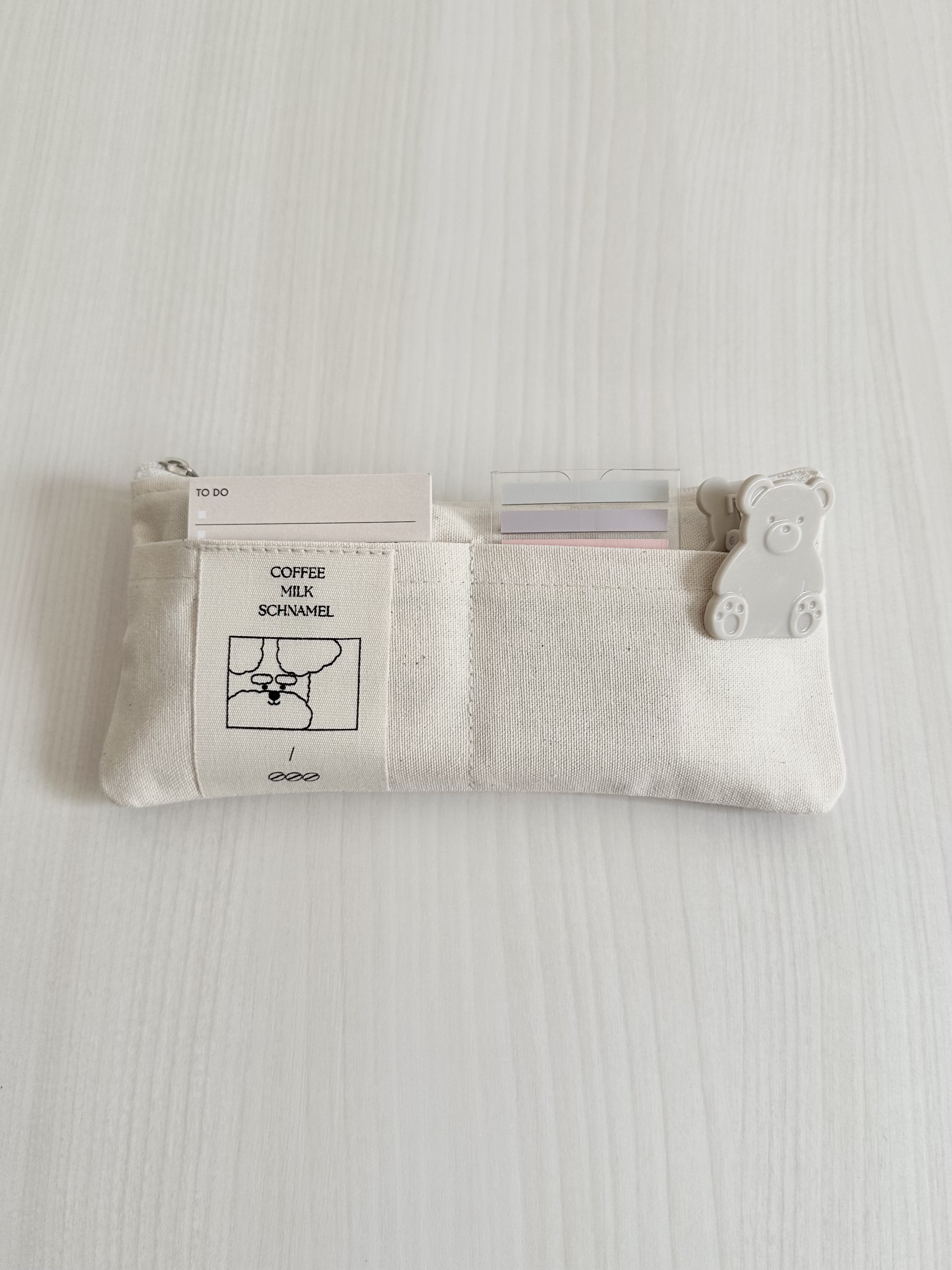 前ポケットが2つ付いており消しゴムや付箋、クリップなど収納でき文房具をたくさん入れたい方にもってこいなアイテム!