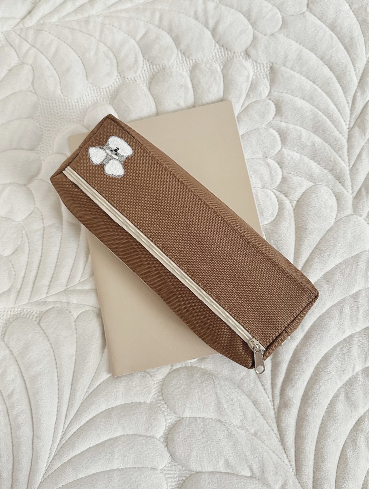 シュナウザーの刺繍ワッペンデザインが施された毎日の持ち歩きが楽しくなるアイテムです。
